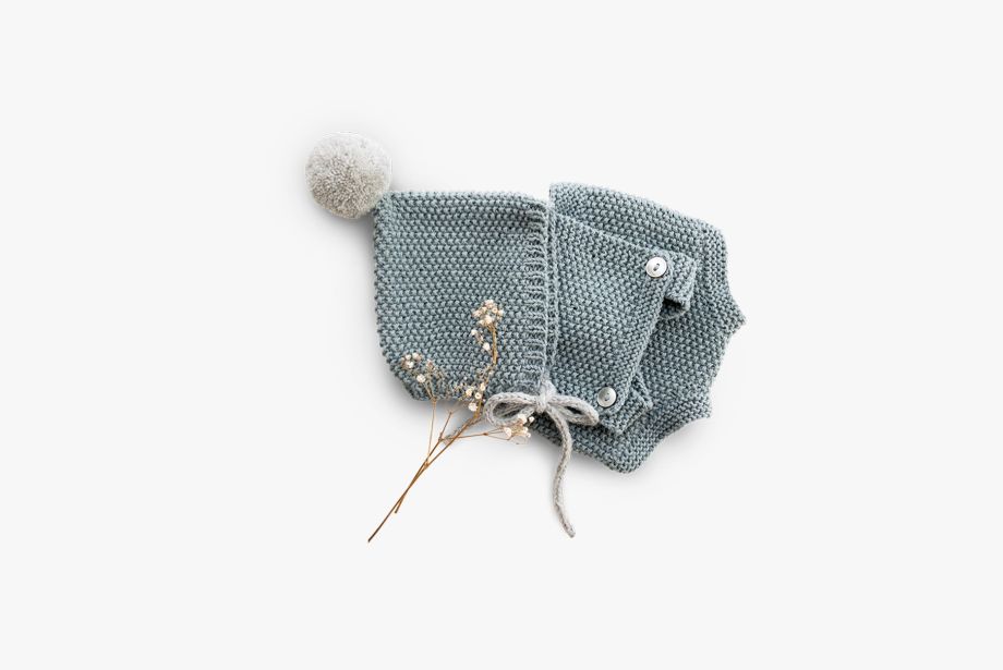 Knitted Baby Suit With a Bobble Hat